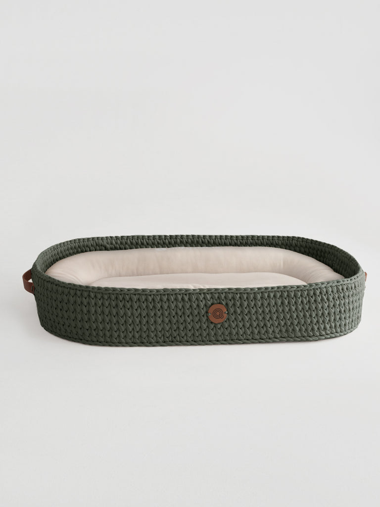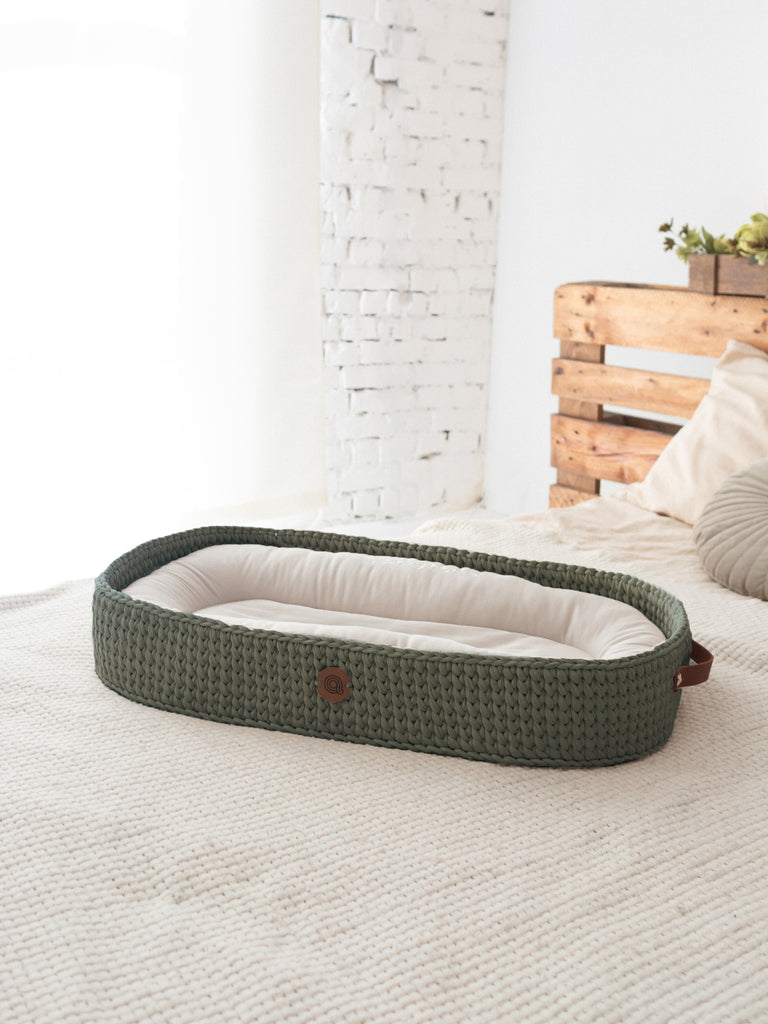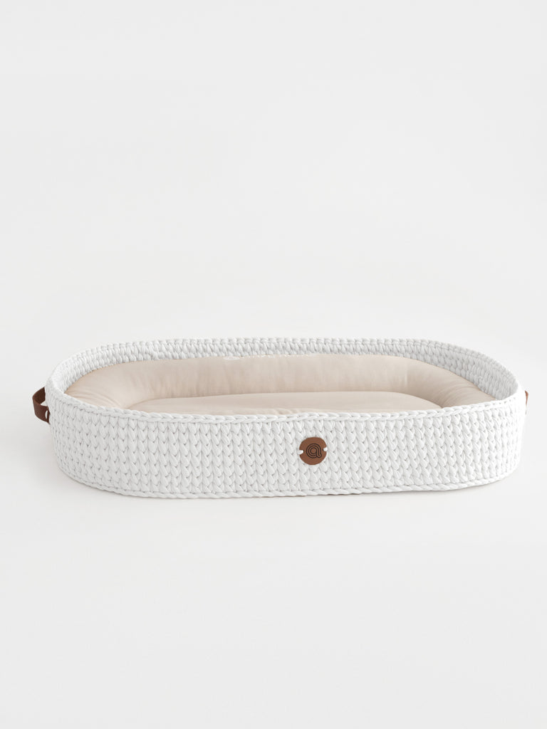 Hand-crocheted baby lounging and changing basket of premium quality made of OEKO-TEX® certified cotton and plywood.