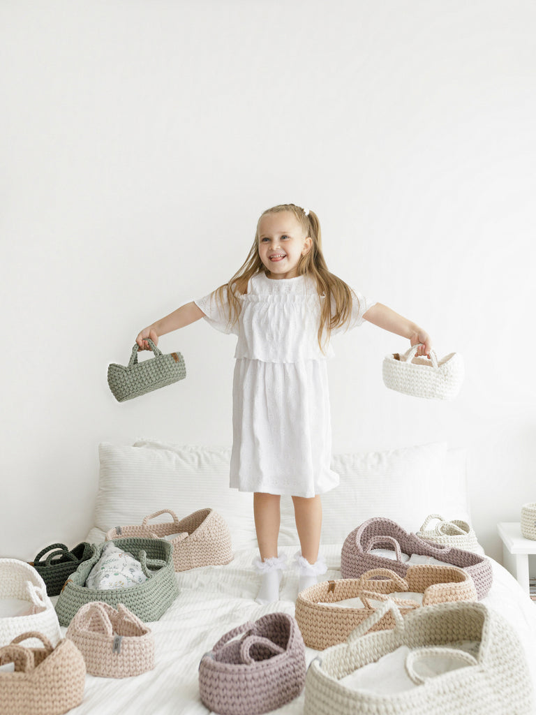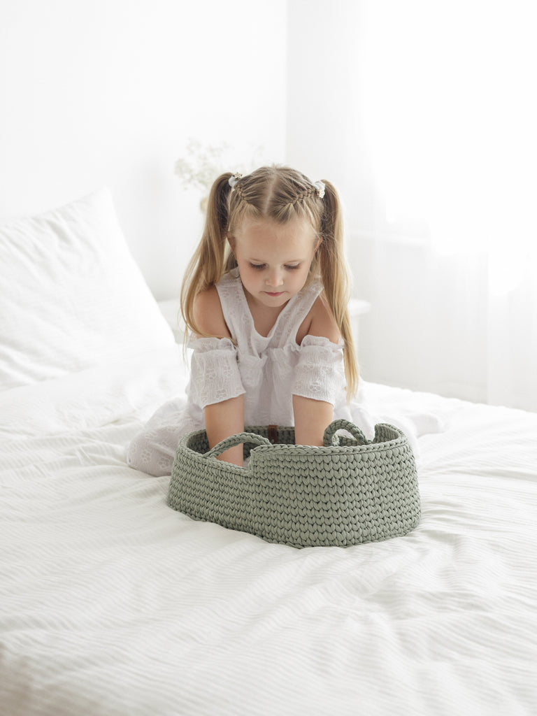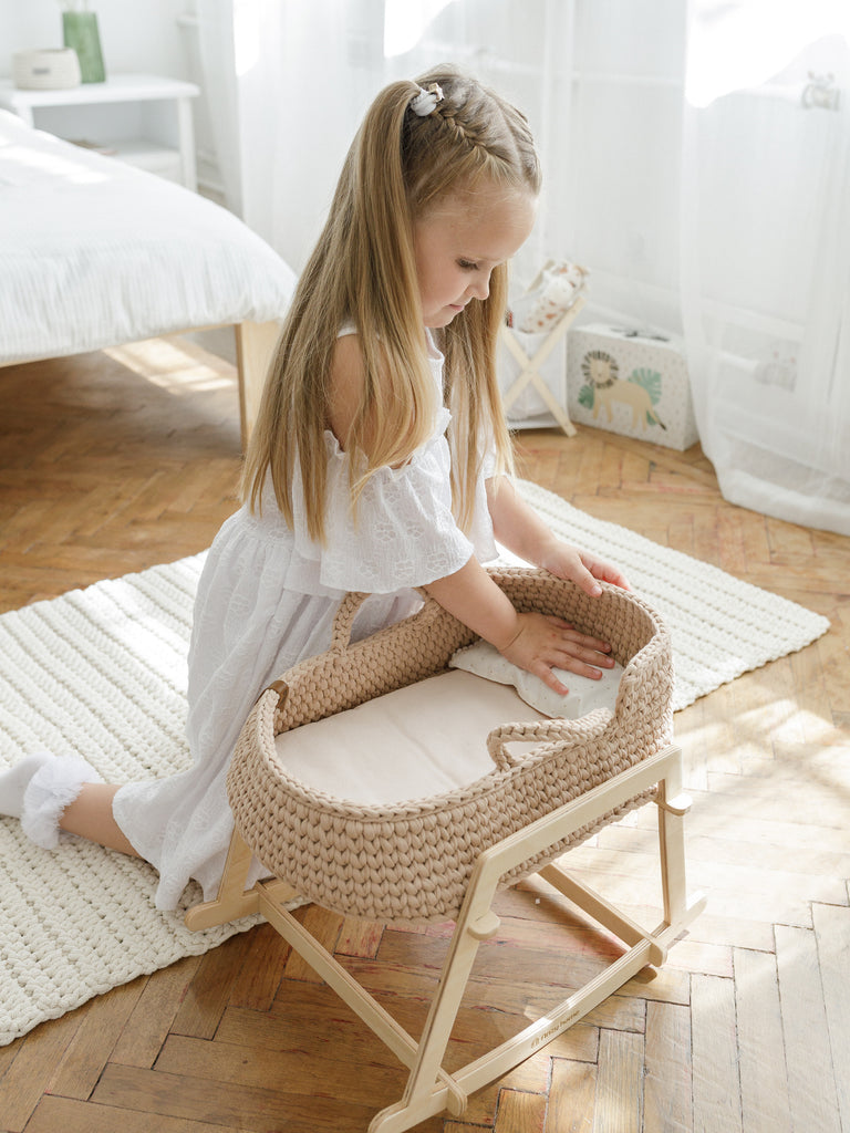 The Anzy Home Doll Moses Basket is perfect for carrying plush toys or dolls and doubles as a chic room décor piece. Featuring a straight hood, it’s a delightful, stylish addition to any child’s collection, crafted with care and quality in mind.