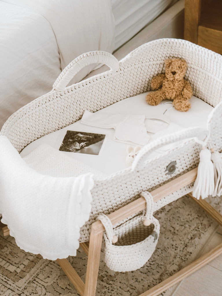 Handcrafted & Sustainable: Ethically hand-crocheted with 100% hypoallergenic, OEKO-TEX® certified cotton, the basket’s walls are soft to the touch yet sturdy. The bassinet bottom is made from thick birch plywood for added support. Two decorative tassels add a cozy, charming touch
