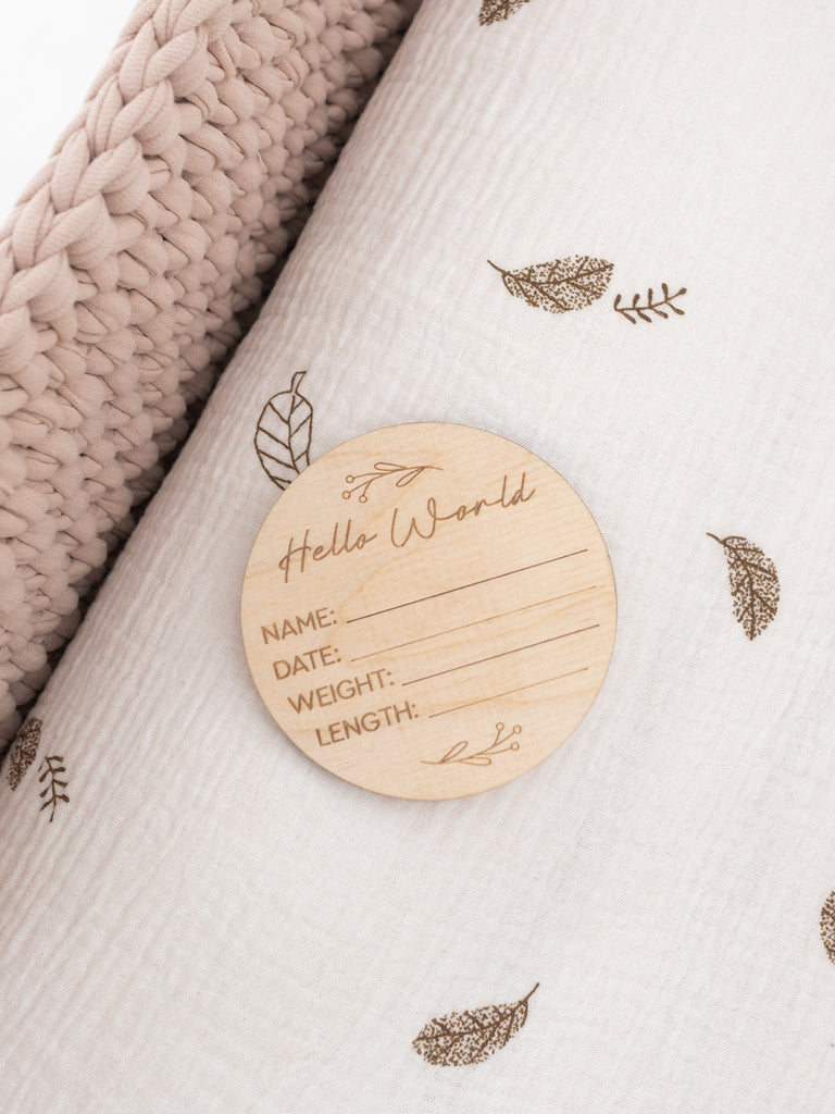Baby personalized wood tags make the perfect way to announce a baby's arrival. Perfect for photo props, it's a great idea for a baby shower gift. Let friends and family share in the joy of a new arrival with this adorable sign. Use a marker to fill in the name, date, weight and length of the baby.