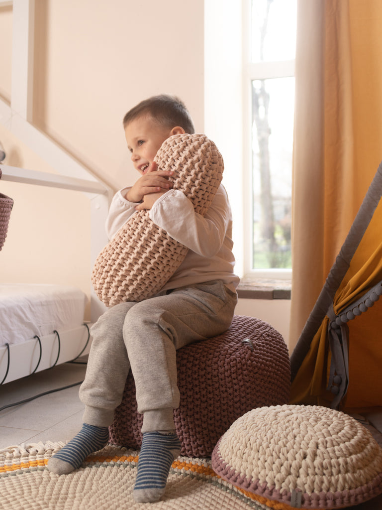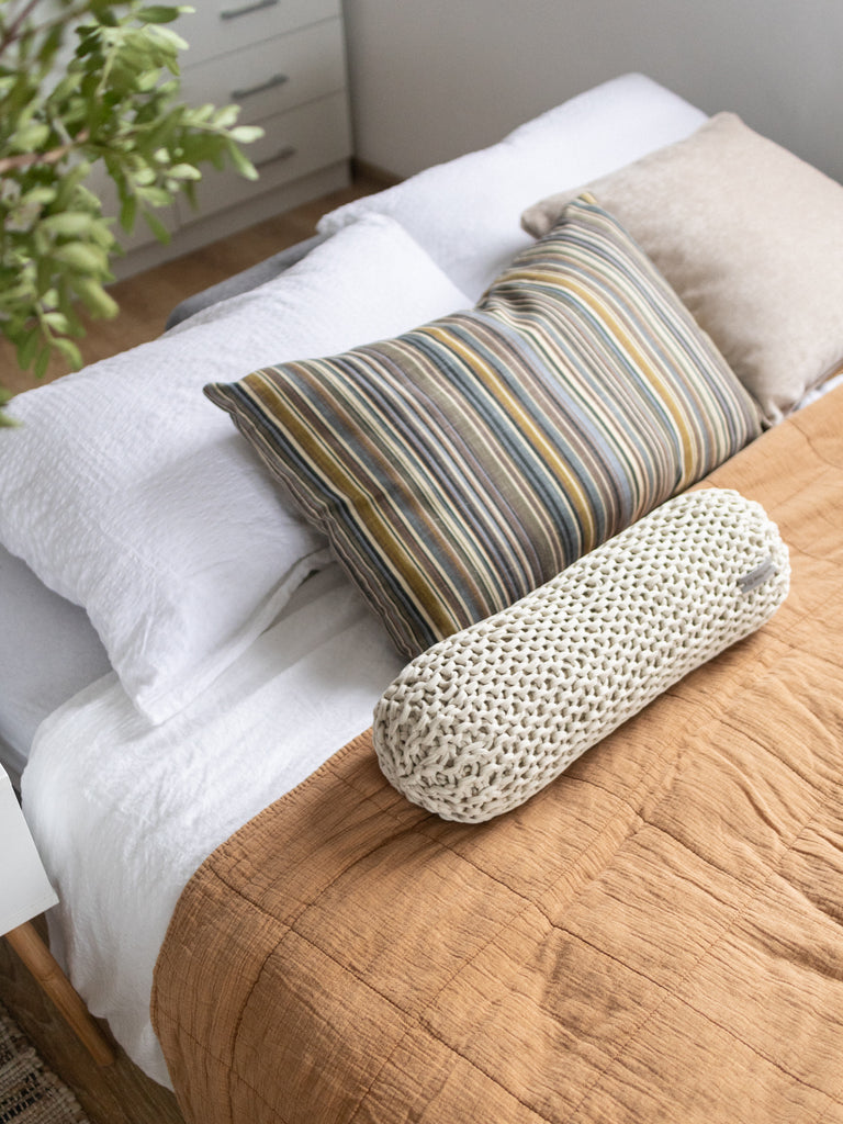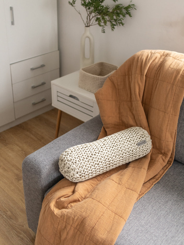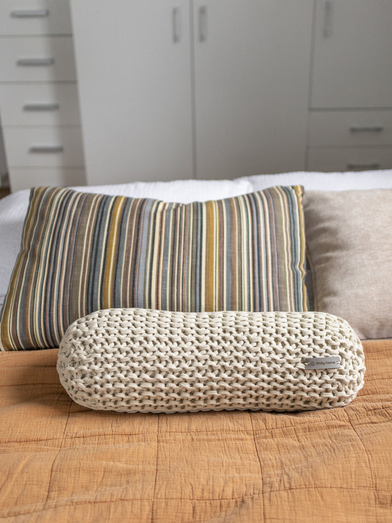 This chunky knit bolster cushion adds an accent to any space and serves as a versatile piece of decor. Its charming and soft design makes it a delightful decorative pillow that's both stylish and comfortable.