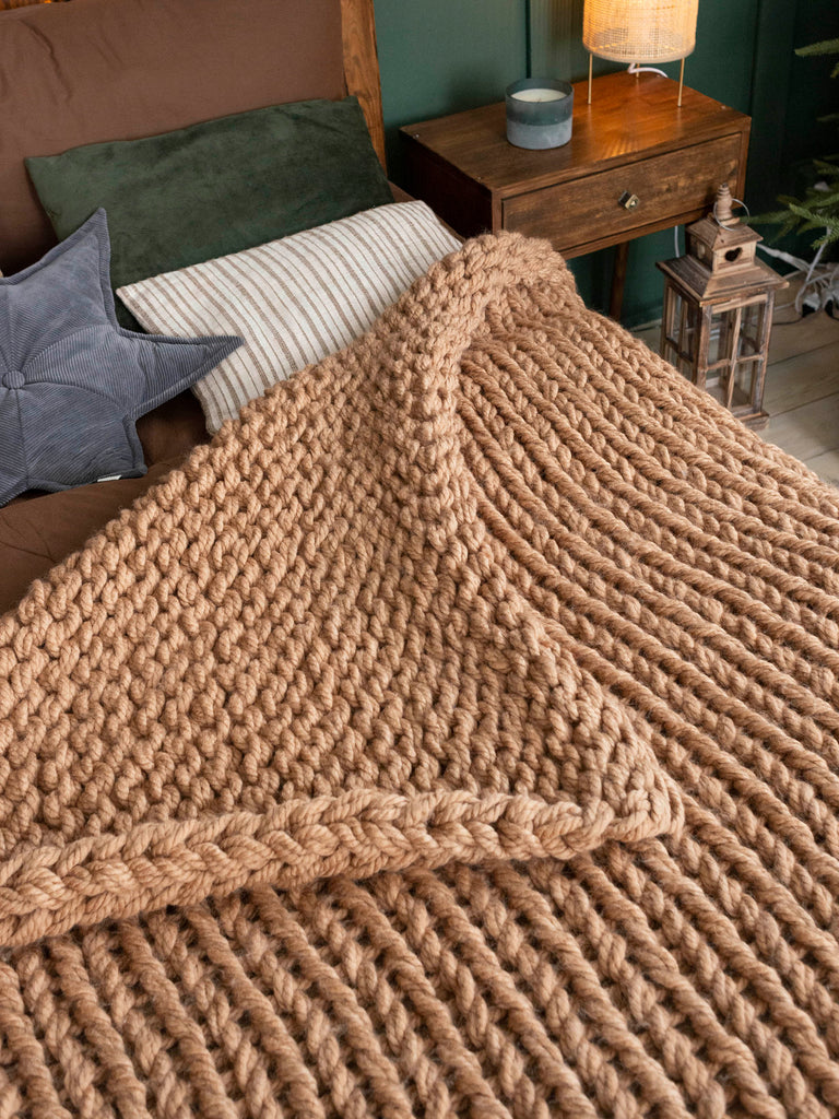This chunky knit blanket is a perfect way to create the Hygge atmosphere in your home.