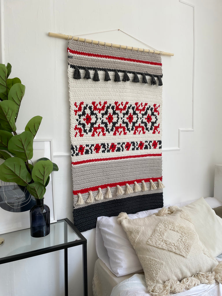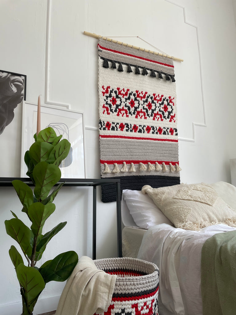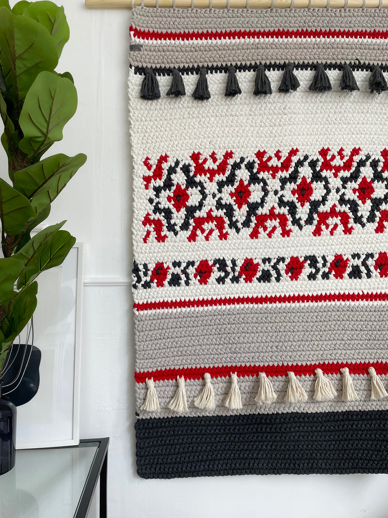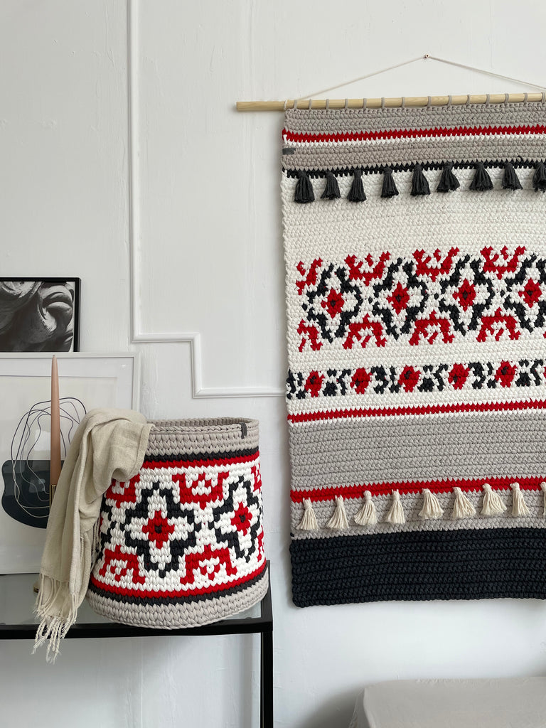 Crocheted Wall Art in Ukrainian Vyshyvanka Style