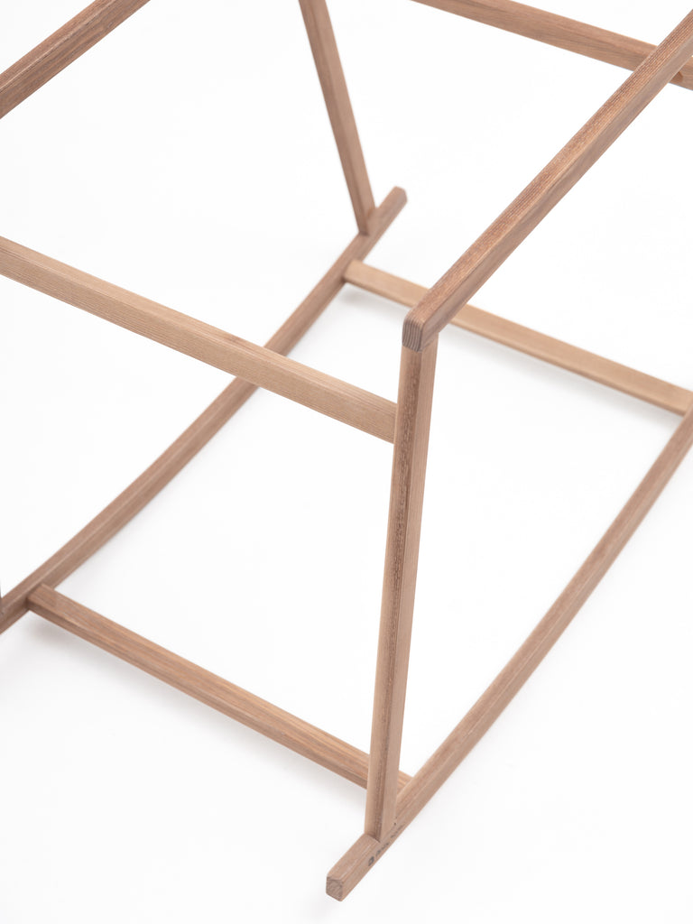 This type of bassinet frame allows soothing a baby to sleep with a gentle rocking motion. The design of our wooden rocking stand is plain and minimalistic, developed to be nicely integrated into the interior.