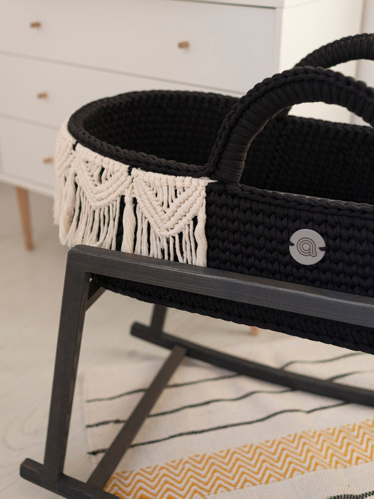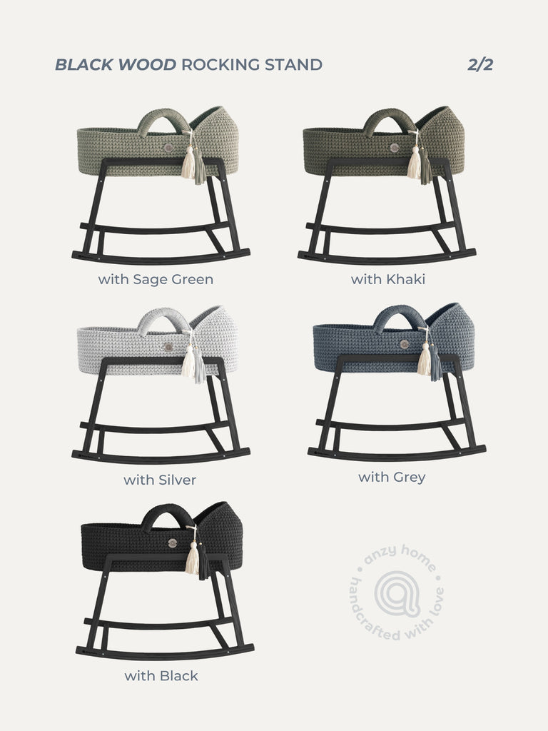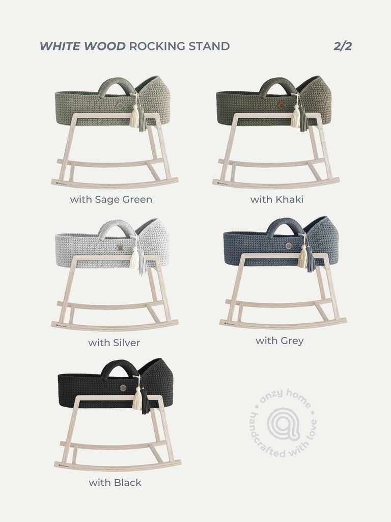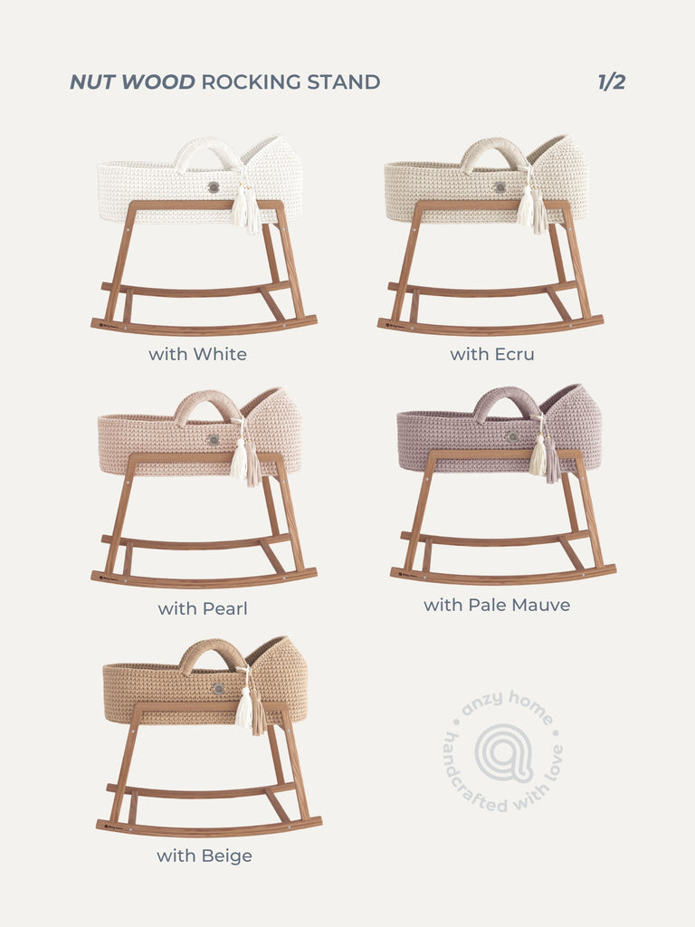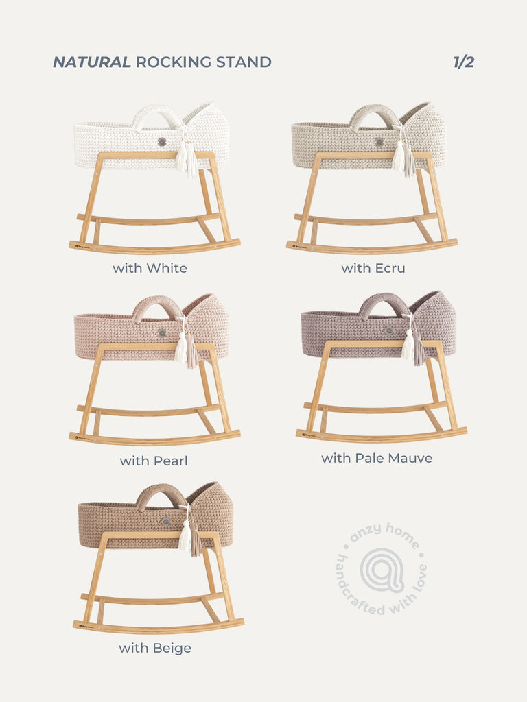 Two sizes of the wooden rocking stands are specifically designed to support Standard Moses baskets of Anzy Home.