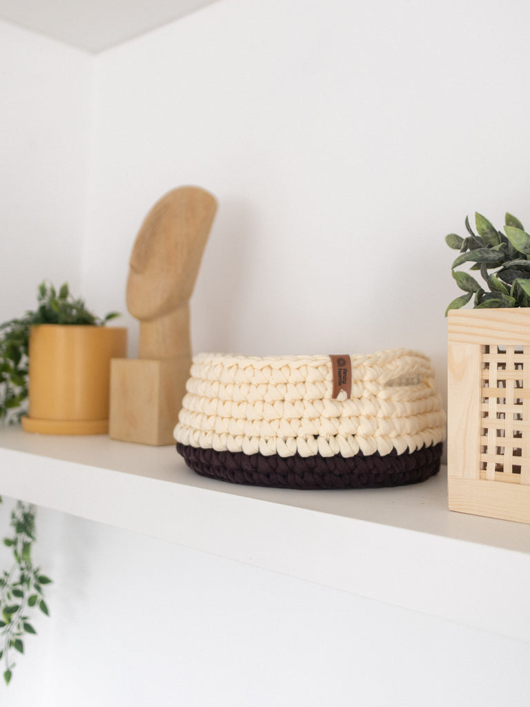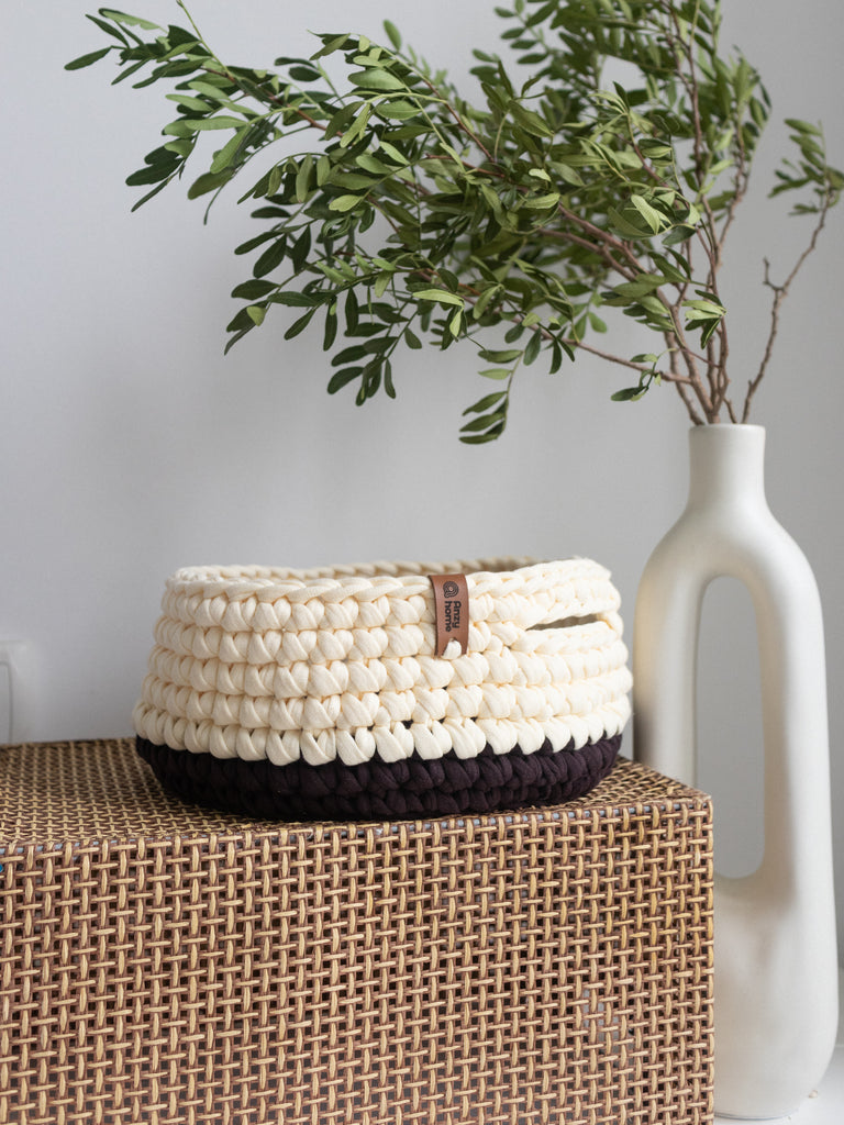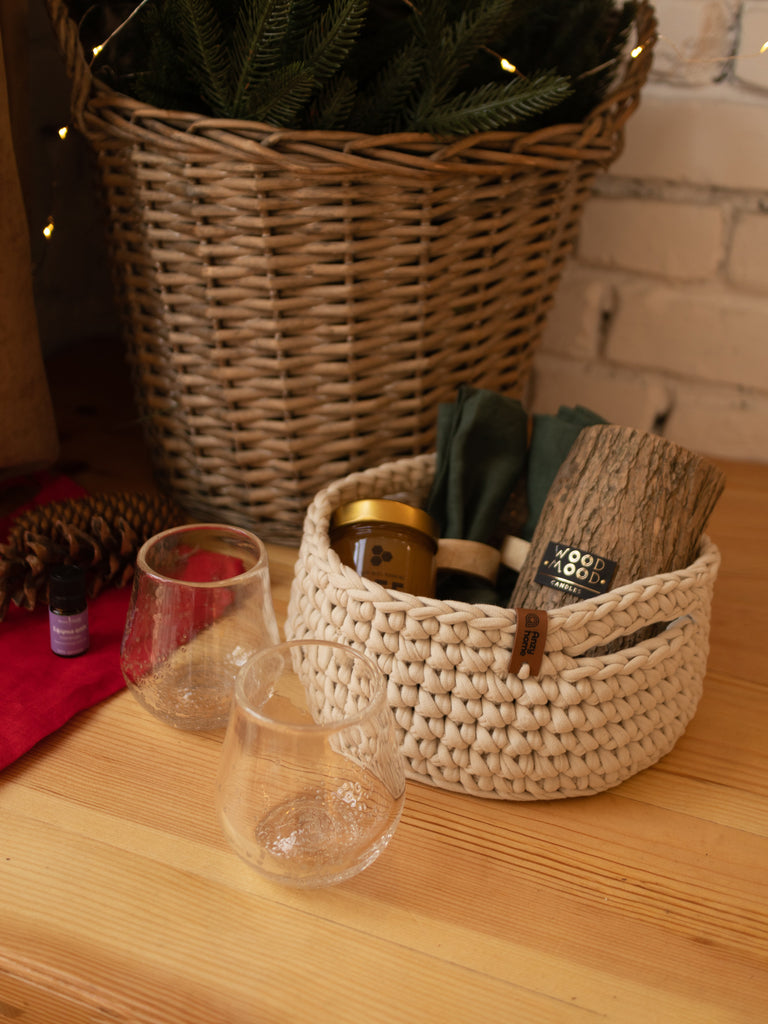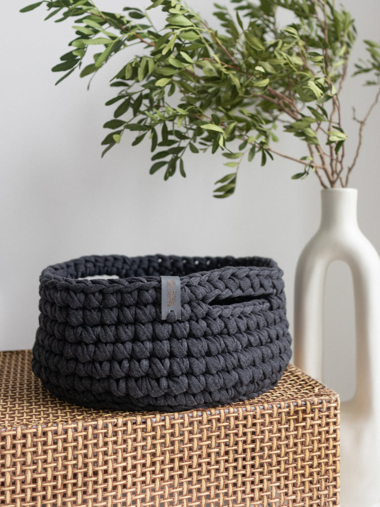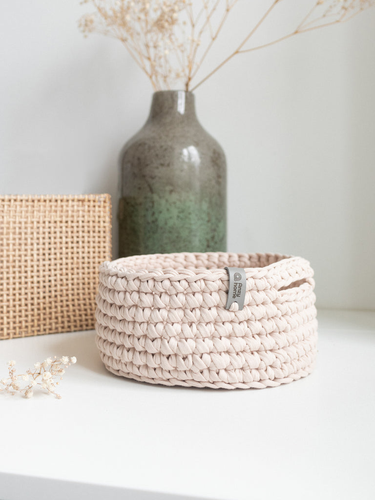 Small soft round storage baskets are hand-crocheted in Ukraine with care for quality and durability. They are perfect for organizing and adding a decorative touch to any space. Good option as a small gift.