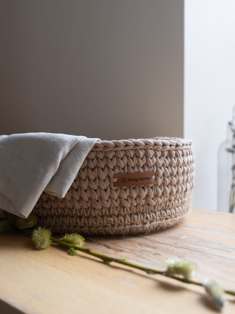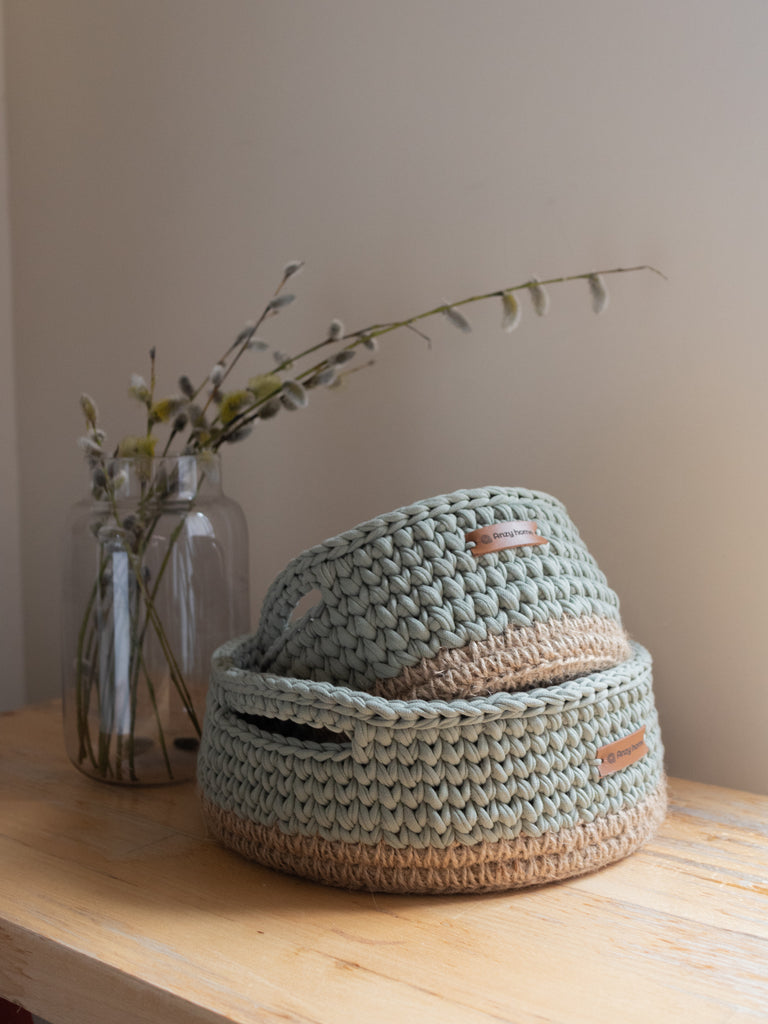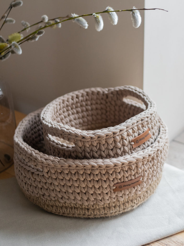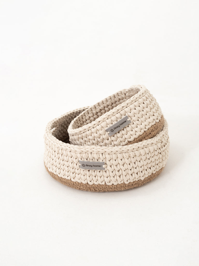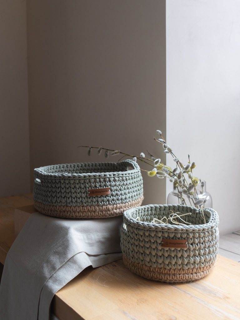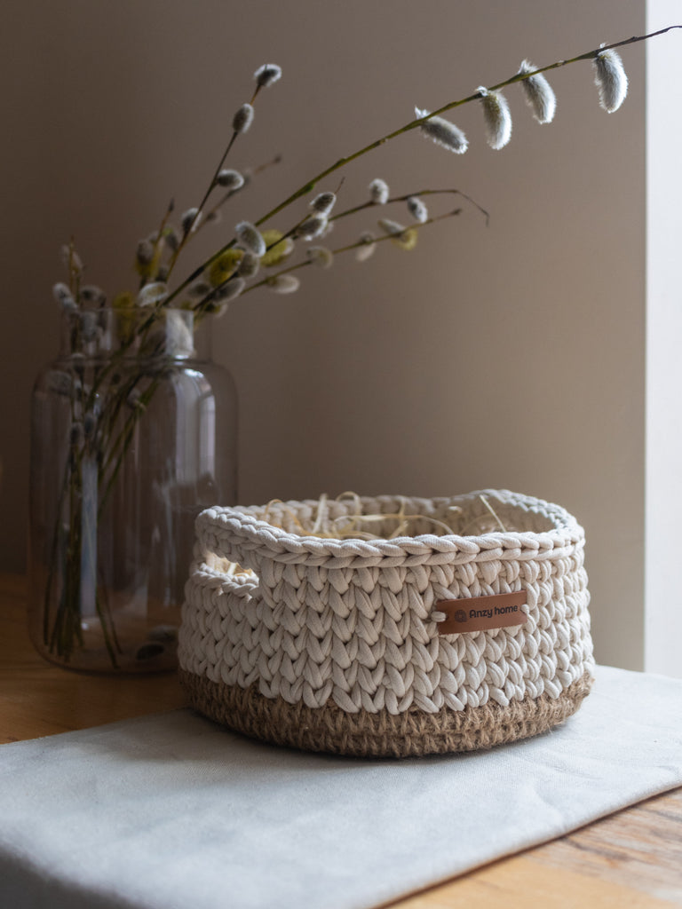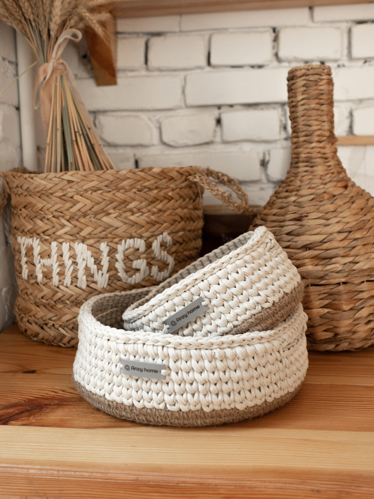 The uttermost advantage of these organizers made in materials combination is that they can be used on and near wet surfaces. Store hand towels and toiletries in a bathroom or use them as a fruit basket in the kitchen. Jute bottom is moisture tolerant and wear resistant.