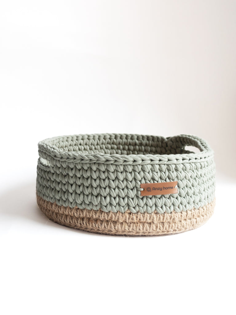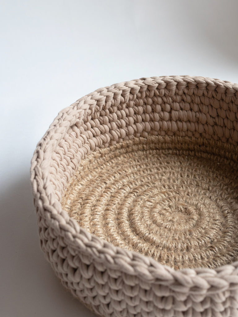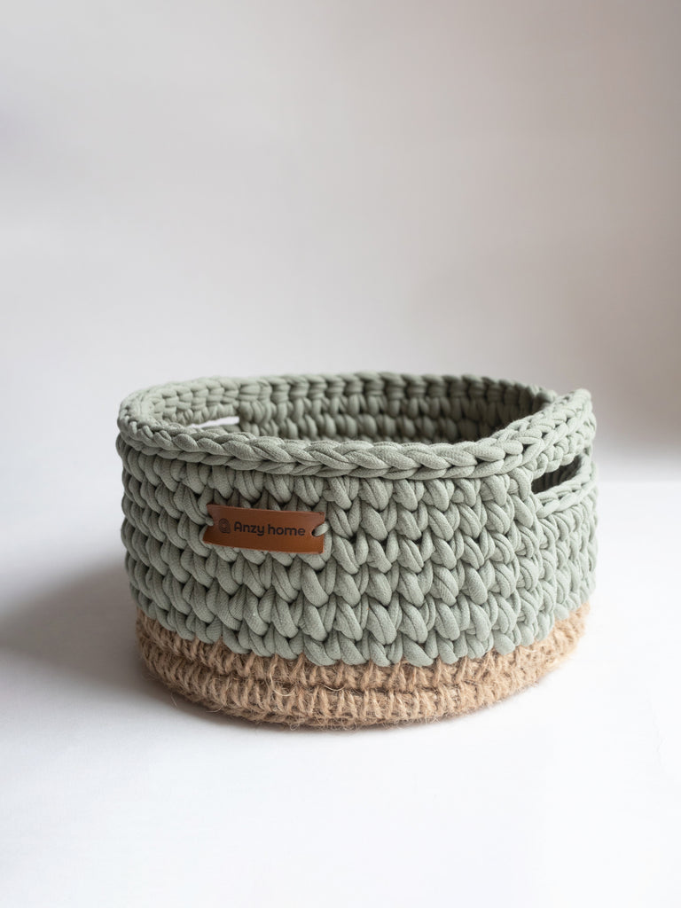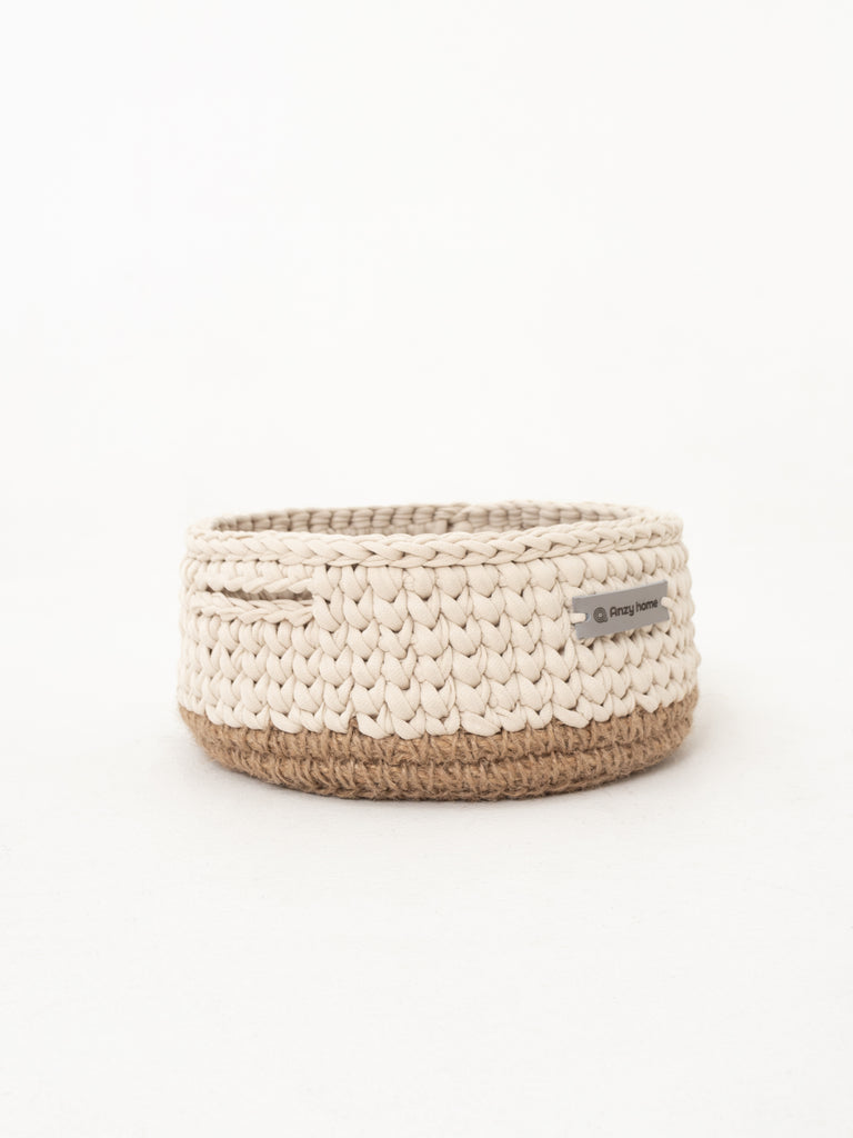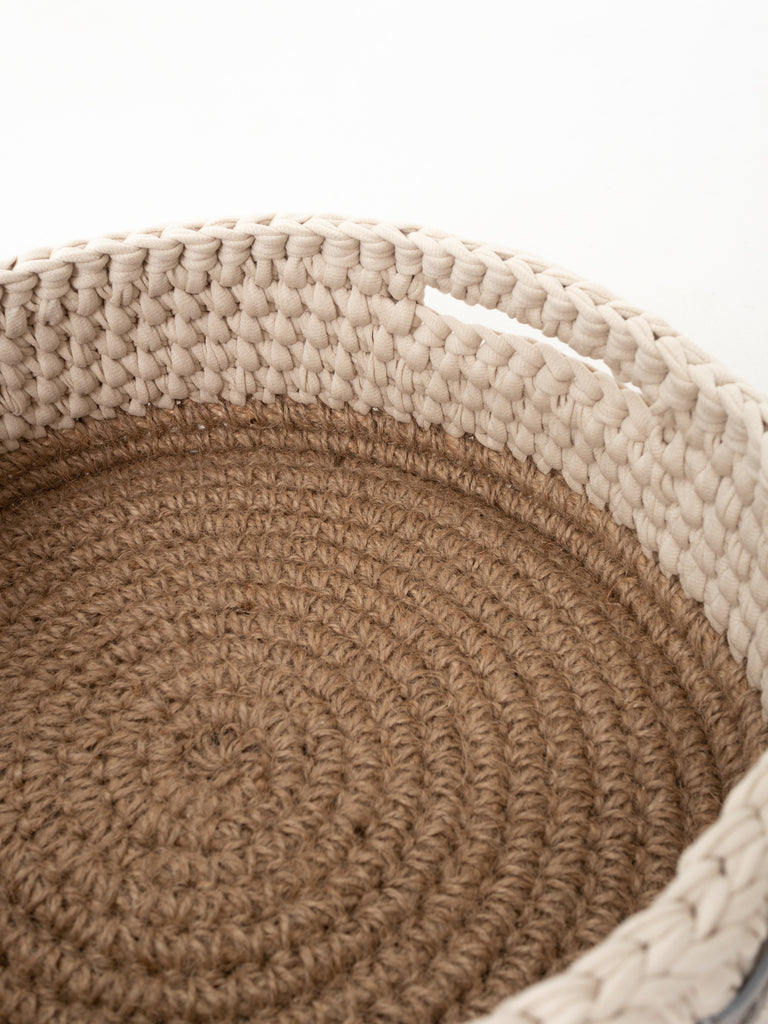 Made of 100% cotton yarn and jute rope. Each basket is unique and handcrafted from scratch.