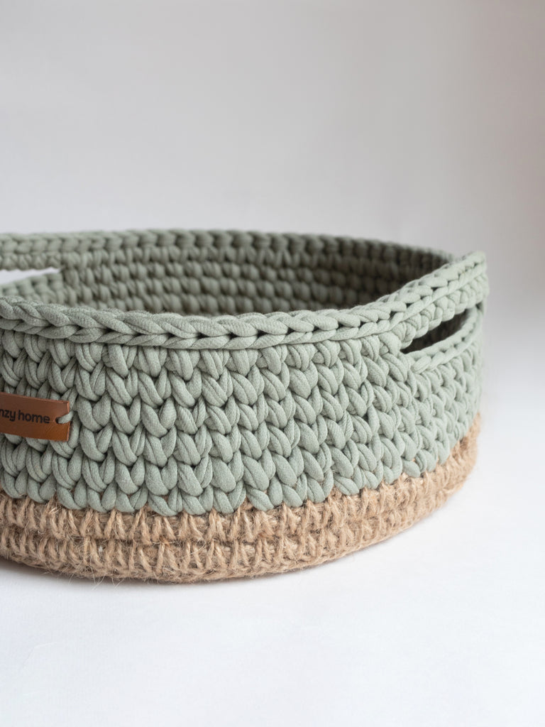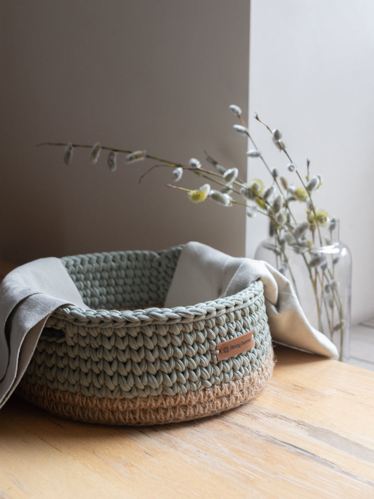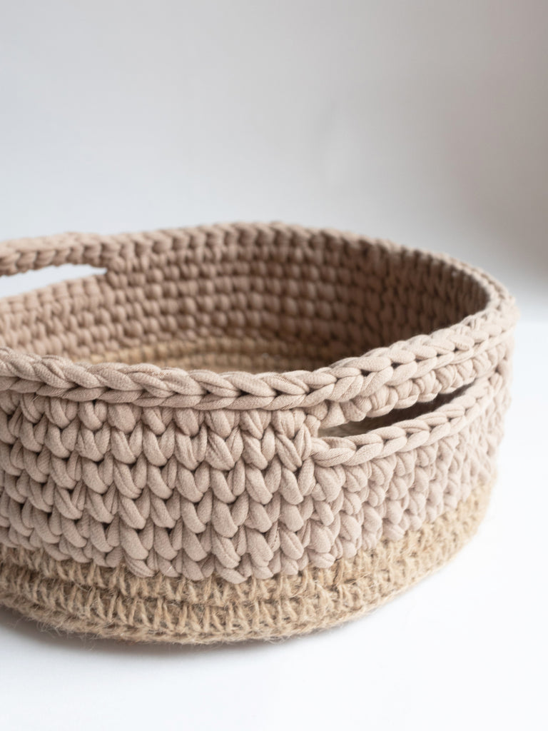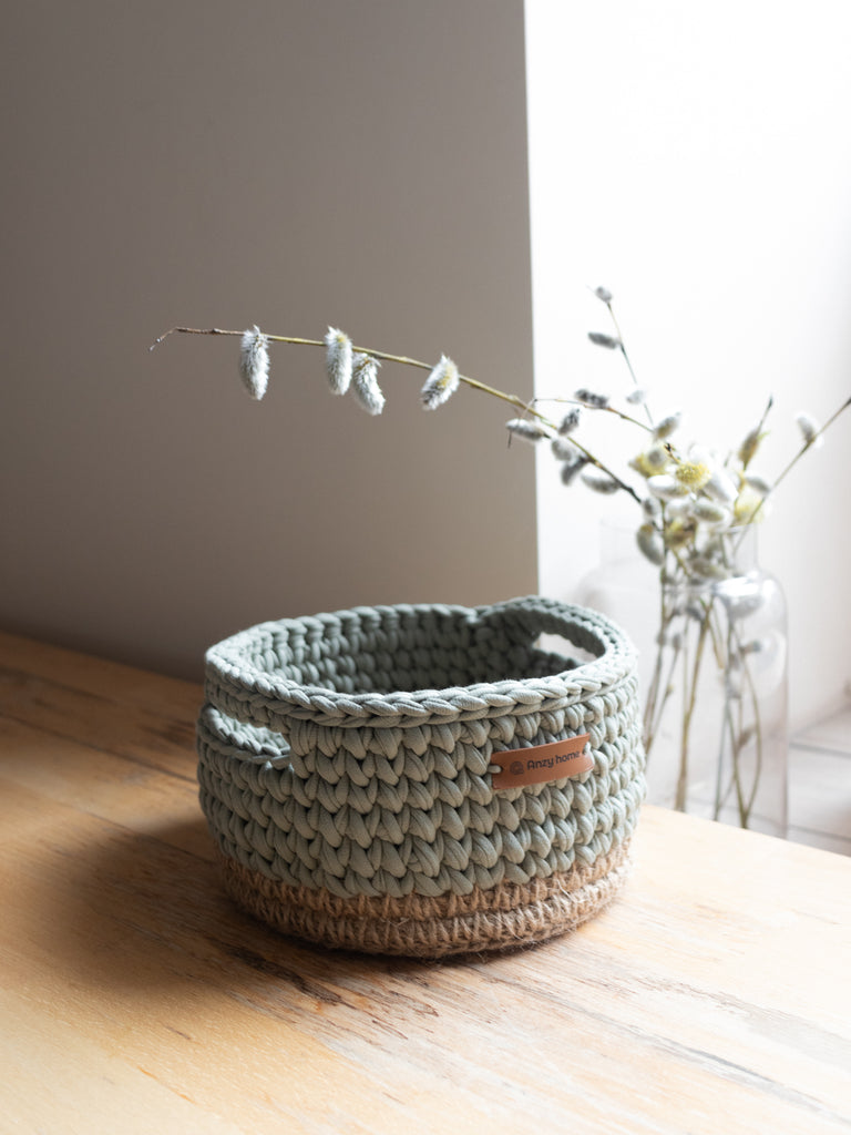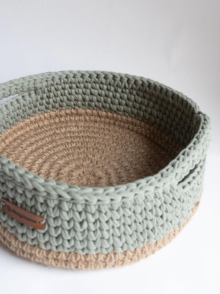Made of 100% cotton yarn and jute rope. Each basket is unique and handcrafted from scratch.