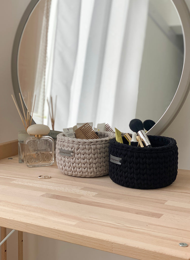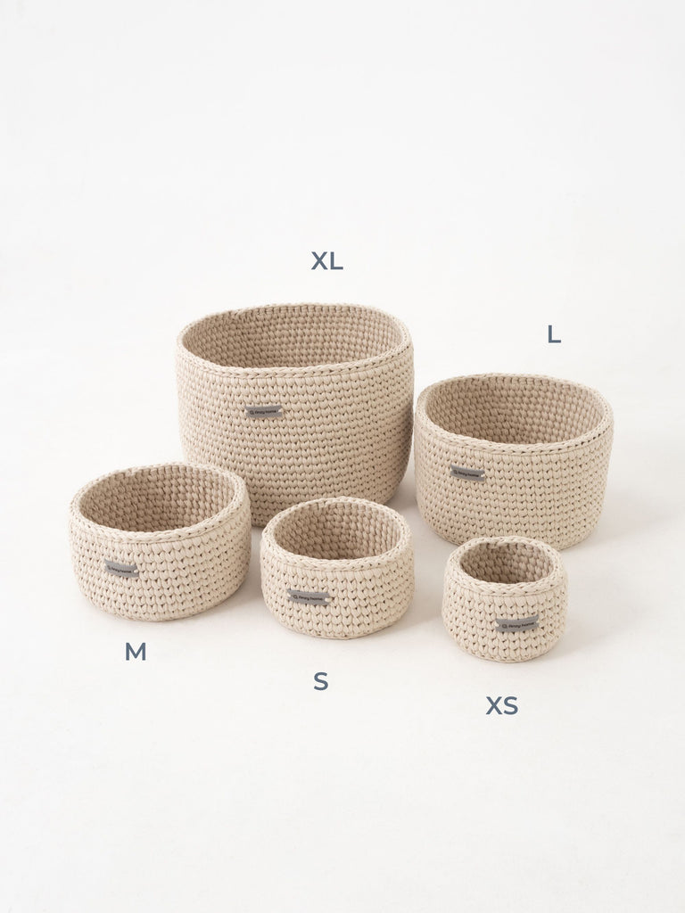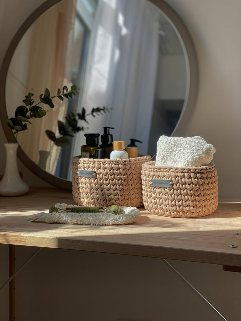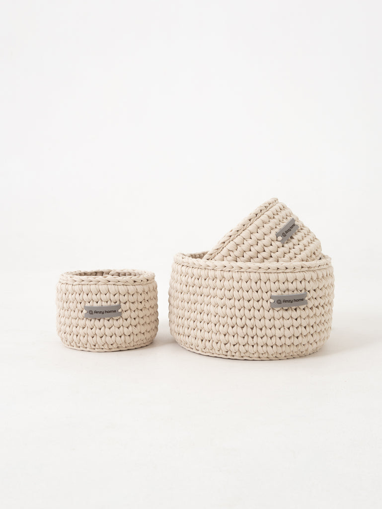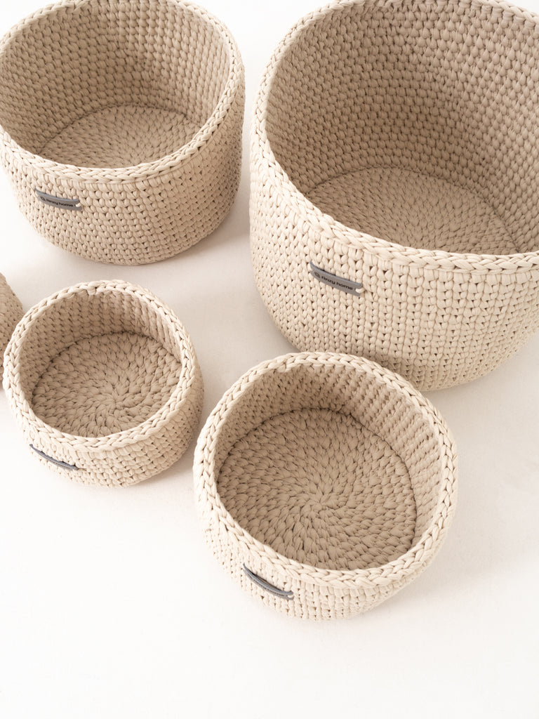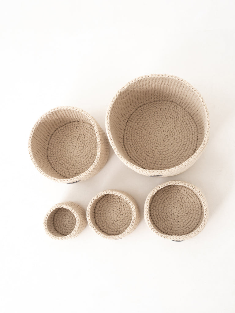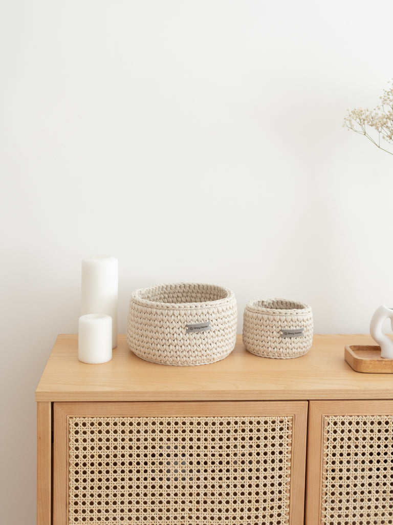 Round storage baskets of different sizes are perfect for organizing essentials with ease, and add stylish touch to the space. The baskets has soft yet sturdy touch.