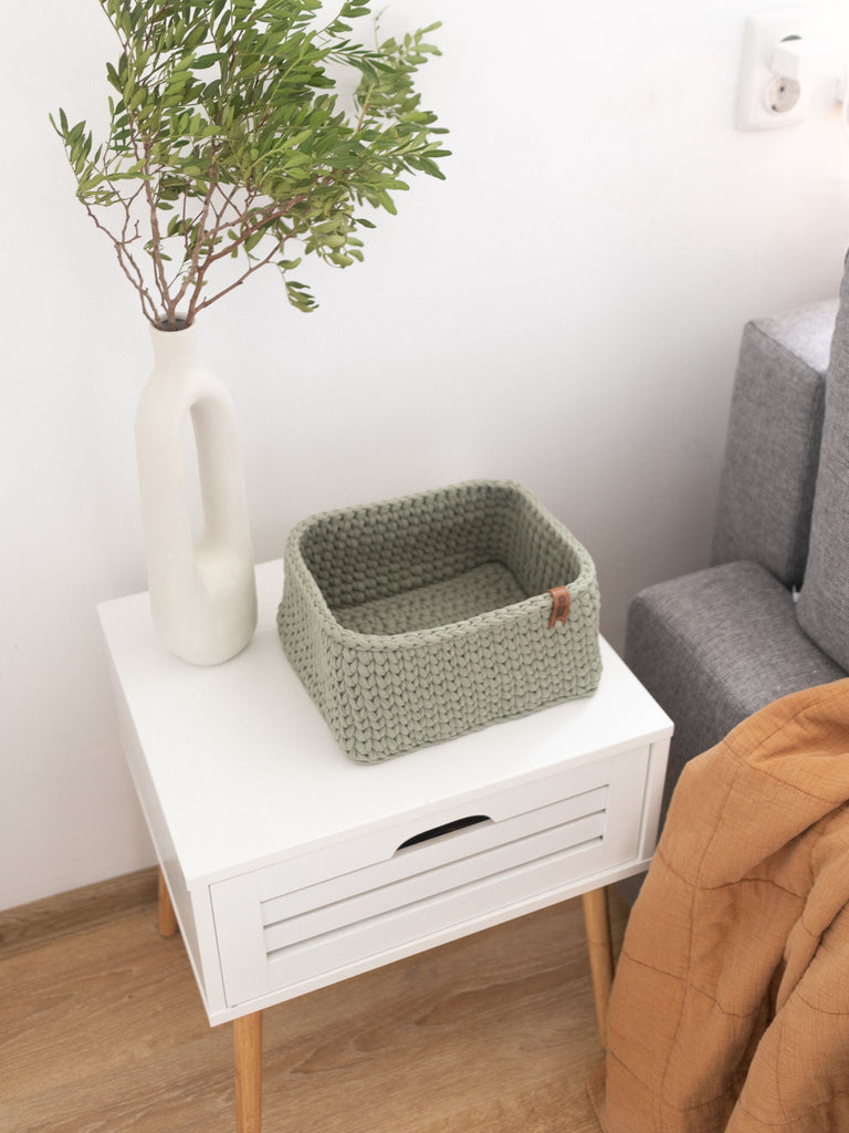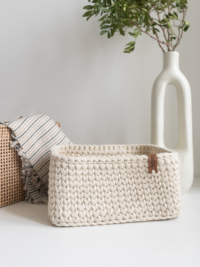 The crocheted storage basket holds its shape well thanks to tight crocheting and sturdy material. It is hand-crocheted in Ukraine with care for quality and durability.