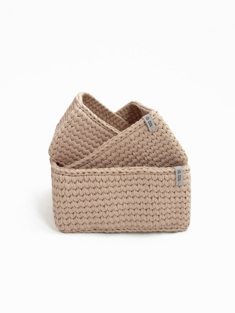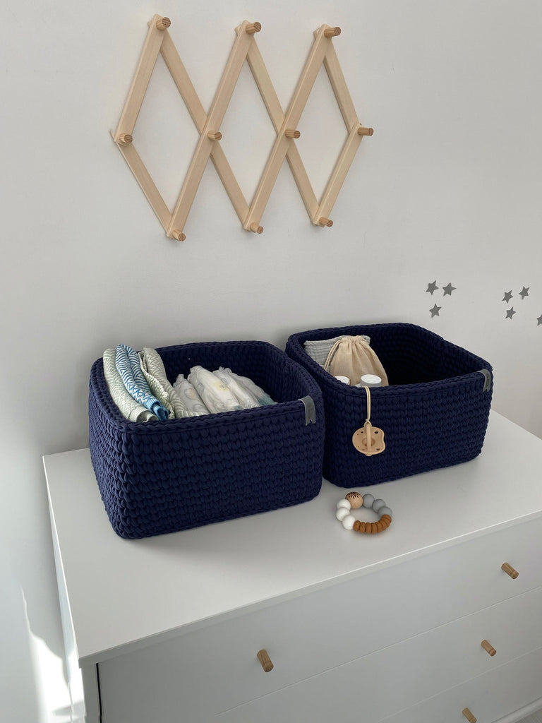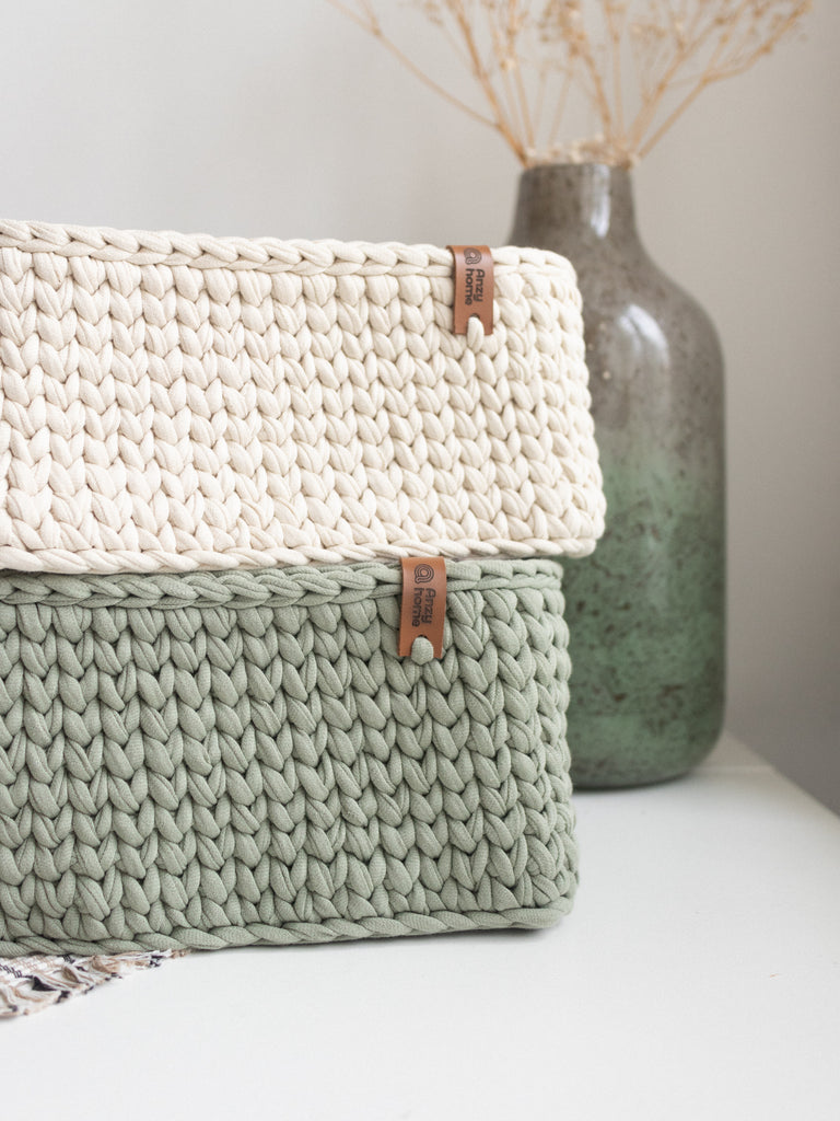 Crocheted storage baskets are spacious and suitable for storing a variety of things: toys, clothes, accessories and many other items.