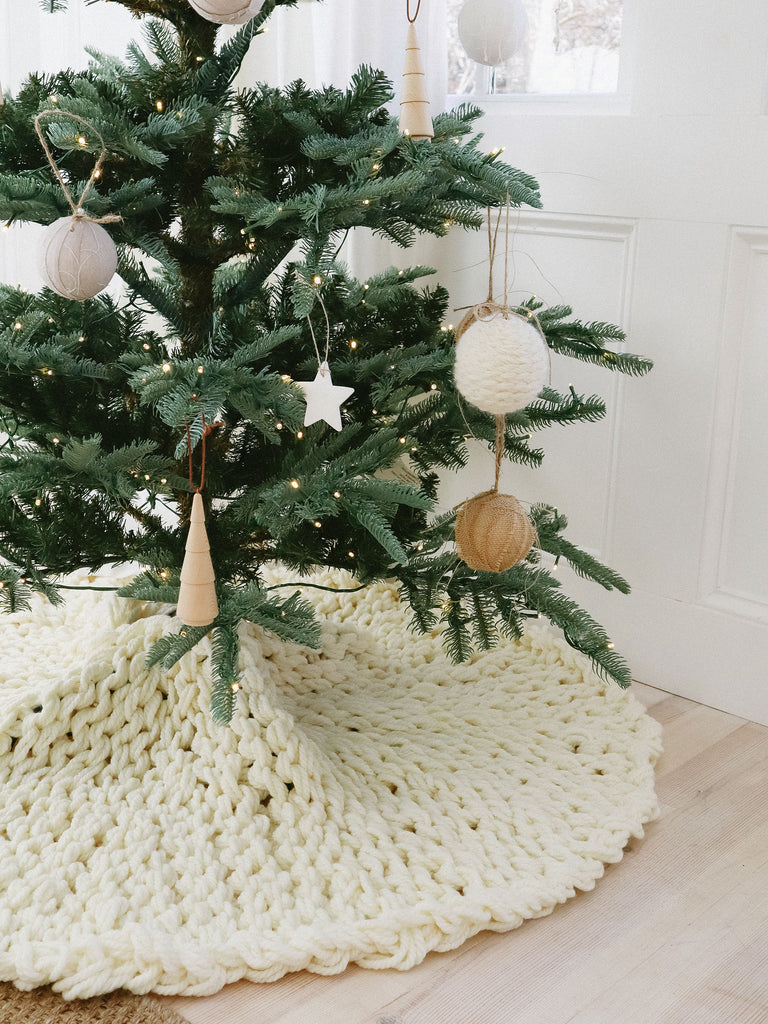 Ivory Chunky-Knitted Christmas Tree Skirt | US Stock