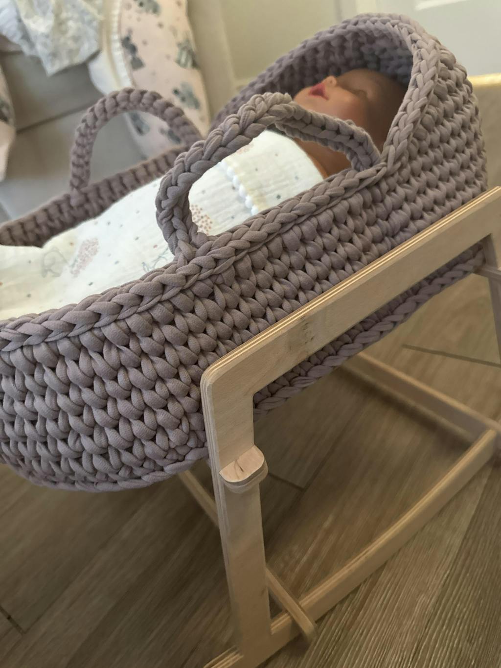 This Moses basket is so adorable and well made! I love the craftsmanship and it is the perfect height for my two year old to play with. The stand rocks very well on wooden floors. I appreciate the ease of installation as well. This is a great heirloom gift that will last!