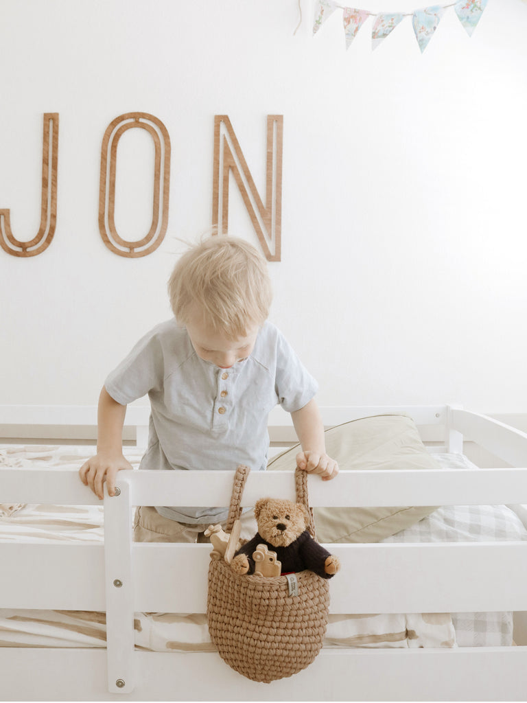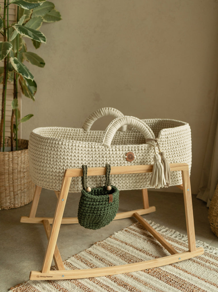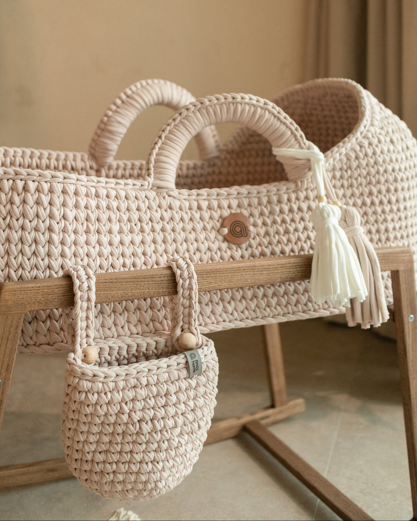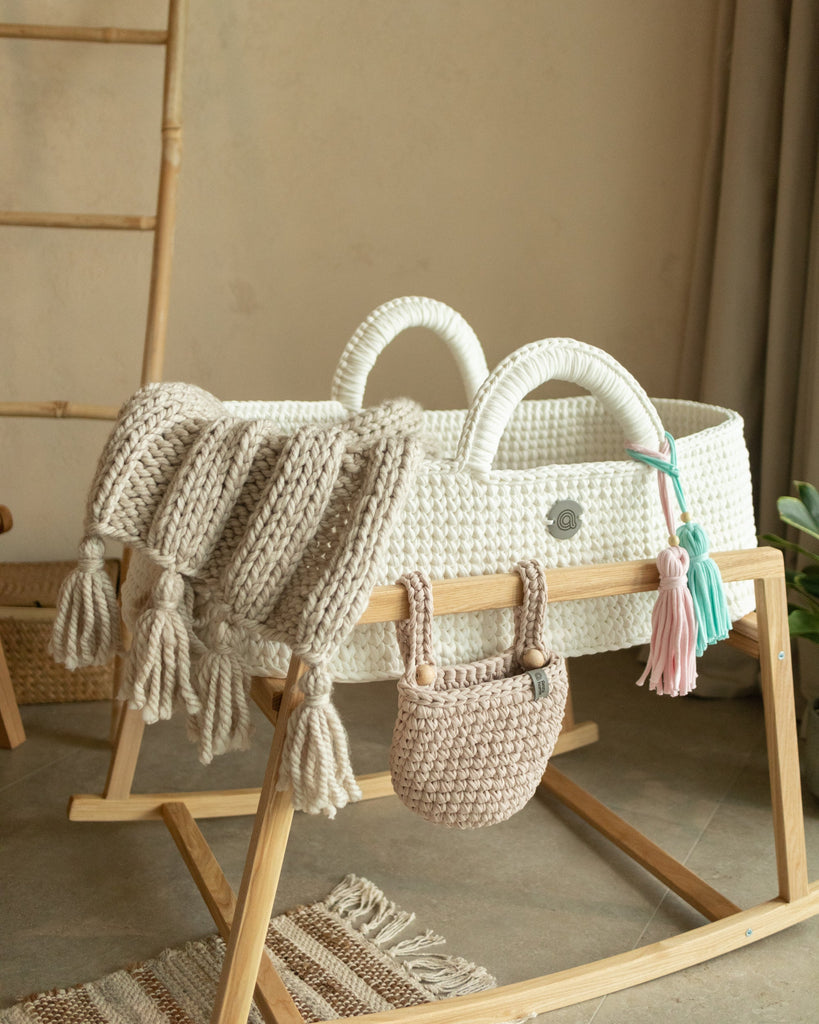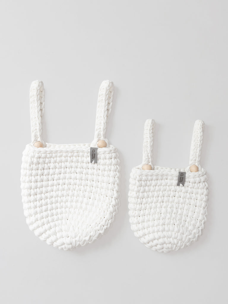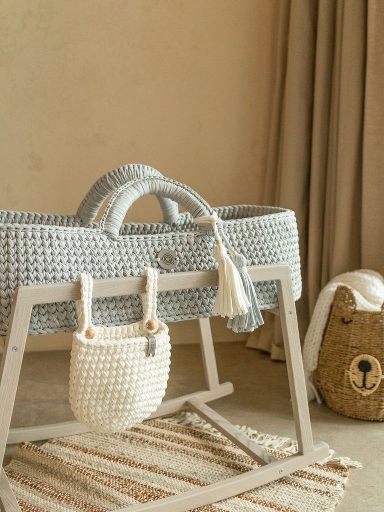 A crib hanging storage baskets are perfect idea for storing small toys, rattles, diapers and other things, that any mom needs to keep on hand. These baskets of natural cotton yarn are good-looking, easy to wash, and to use, stylish accessory for your home.