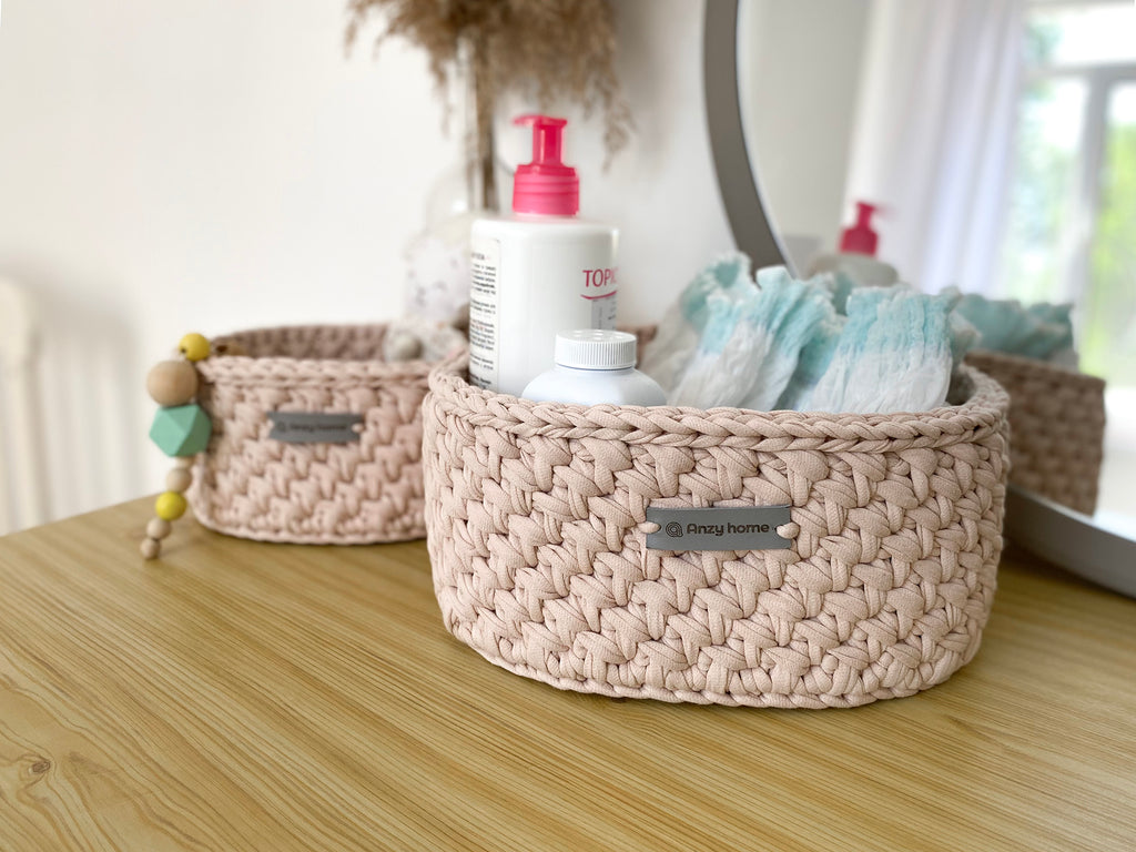 The style of these baskets matches with Anzy Home’s baby changing baskets. Place them onto the dresser in your nursery alongside the changing basket to store diapers, nappies, and baby cosmetics.