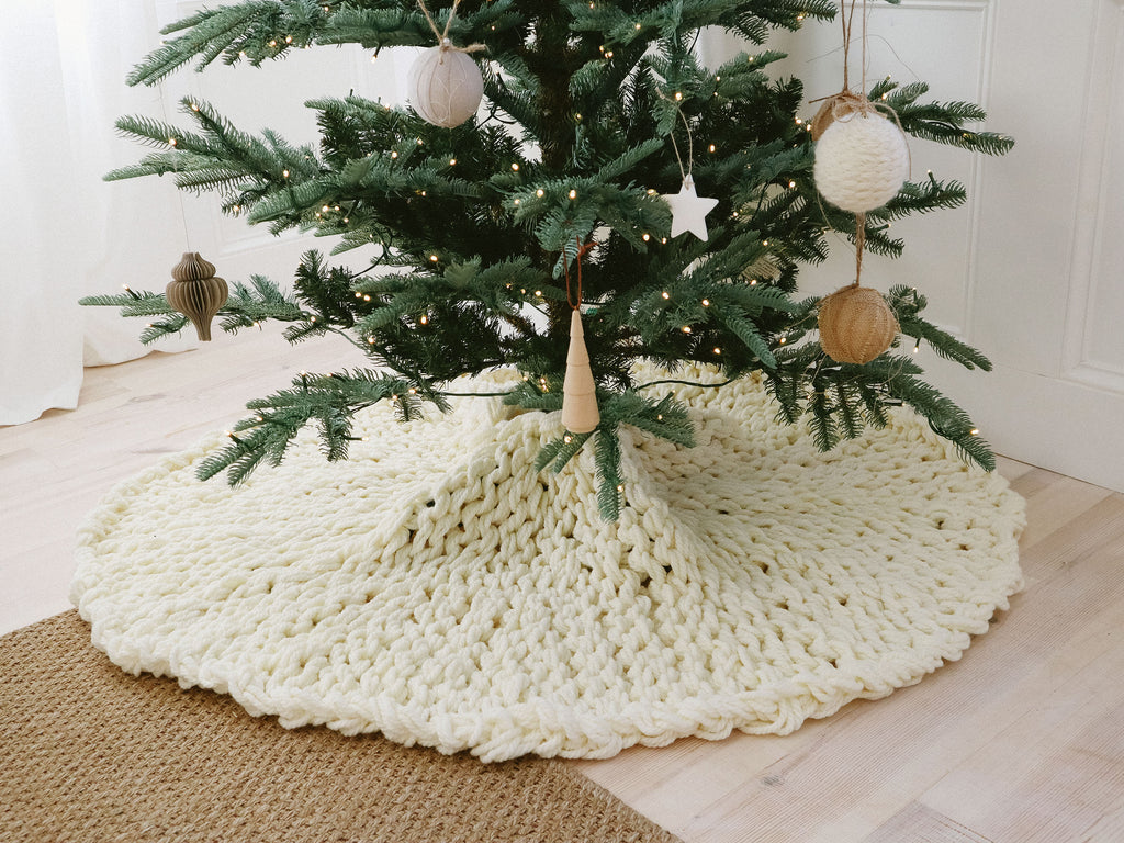 Ivory Chunky-Knitted Christmas Tree Skirt | US Stock