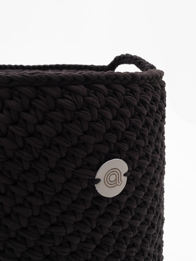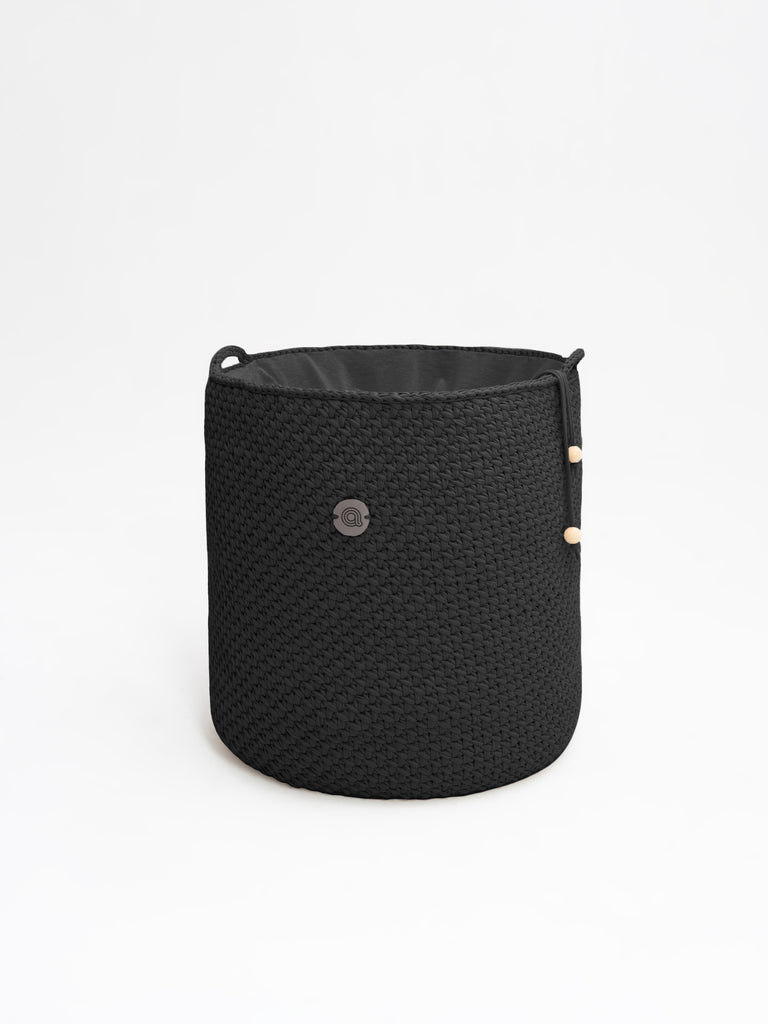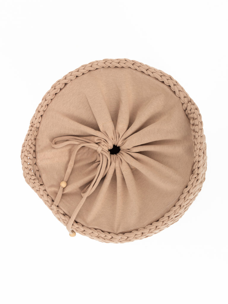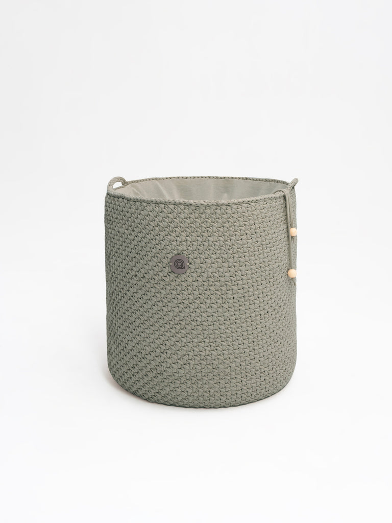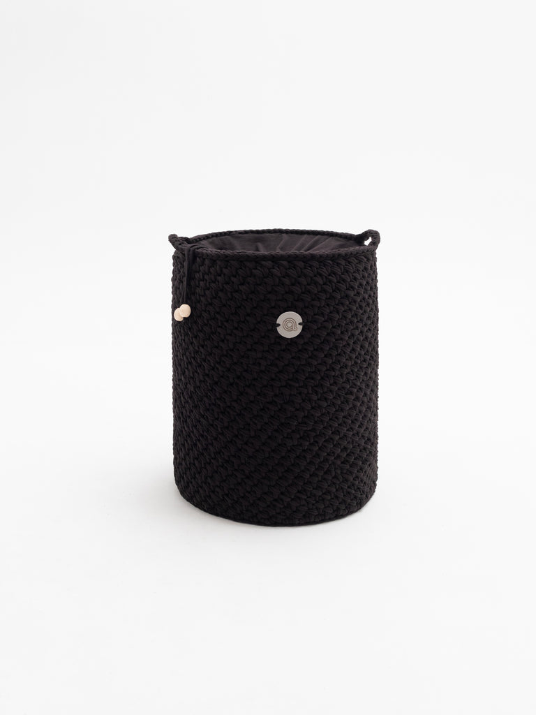 This handcrafted basket is made of 100% cotton yarn. It features a round bottom and sturdy shape perfectly due to the pattern and tight crochet. Equipped with handles for easy movement and convenient tightening from above.