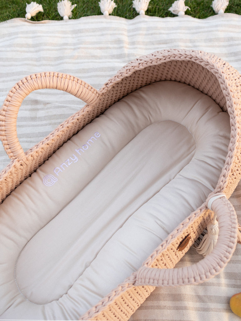 The Anzy Home Lounger Nest Standard is designed to fit inside our Standard Moses Baskets, Macrame Bassinets, and can also be used on any flat surface.